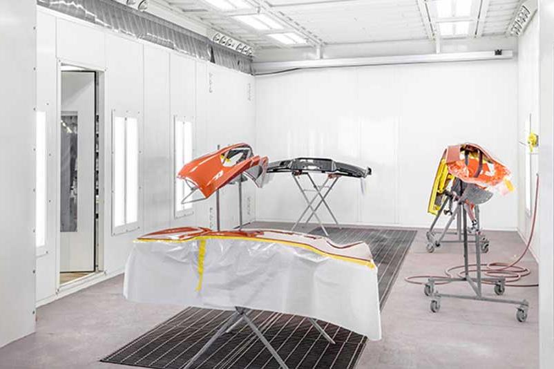 Because we have 9 spray booths, we can guarantee a fast turnaround time. All rooms are closed and equipped with modern extraction systems. This ensures that the vehicles and parts are sprayed dust and dirt-free. This ensures a tighter and more professional result.